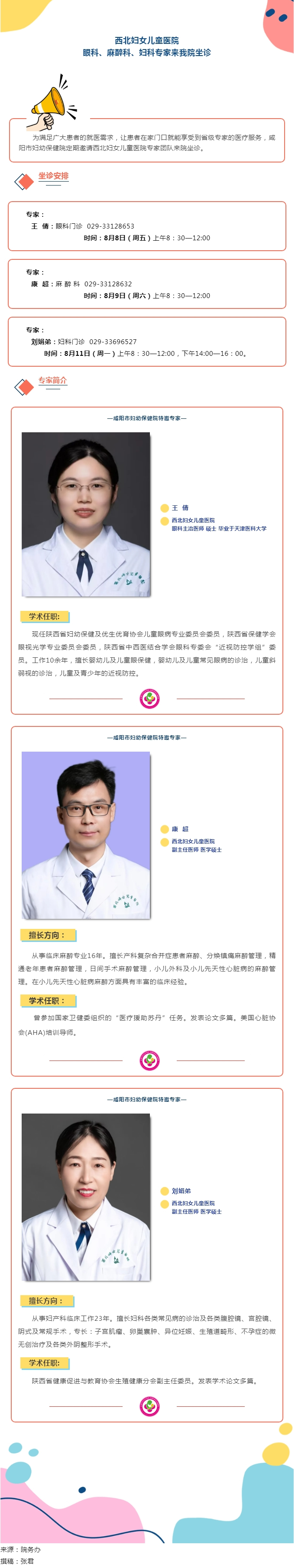 8月9日、8月11日西北妇女儿童医院麻醉科、妇科专家来我