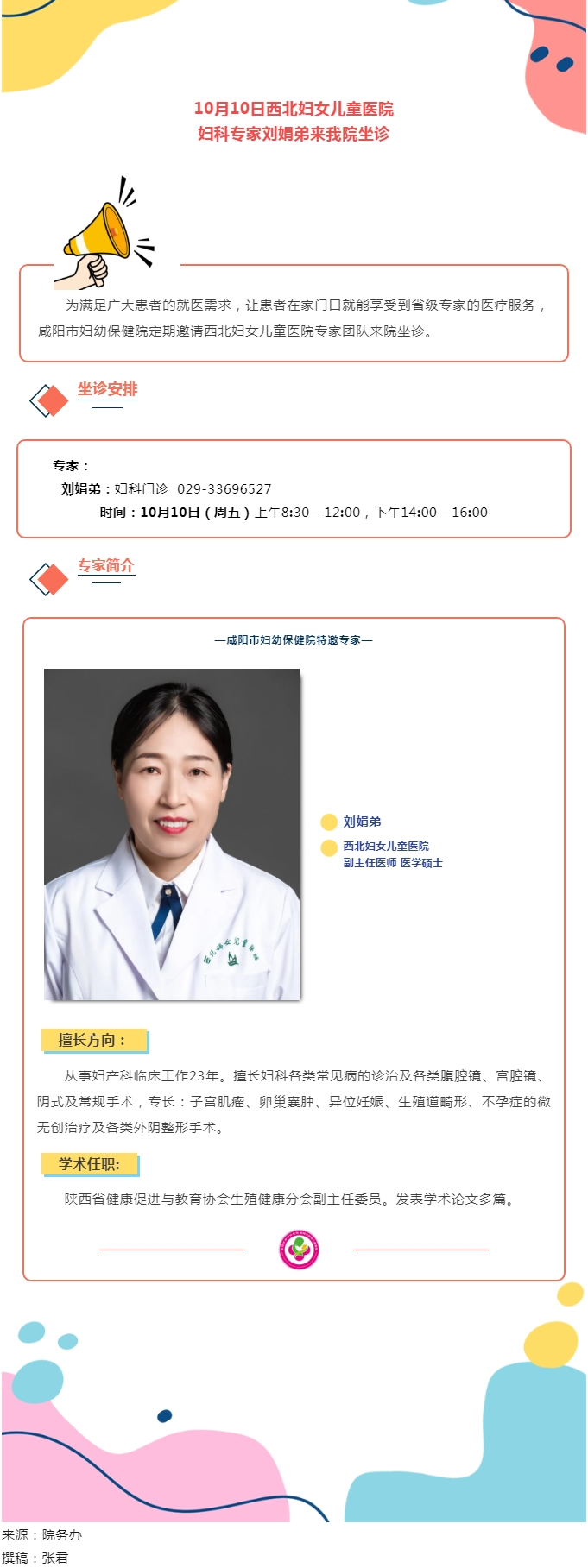 10月10日西北妇女儿童医院妇科专家刘娟弟来我院坐诊
