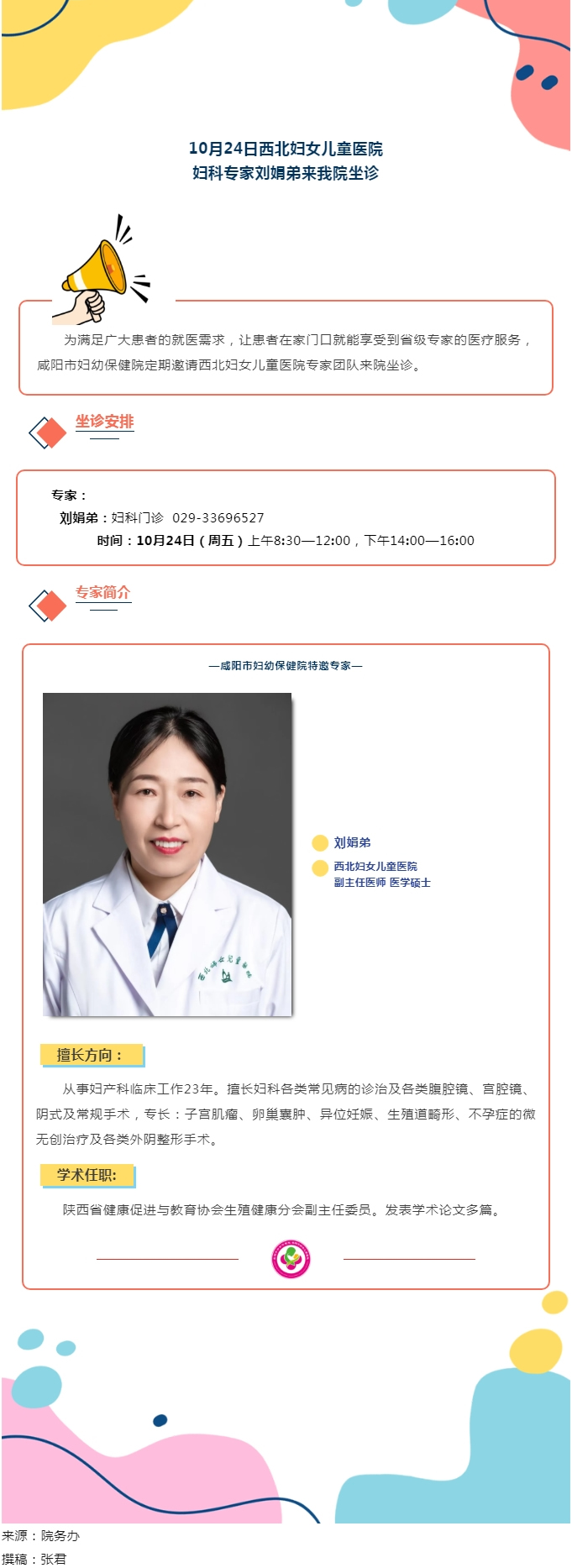 10月24日西北妇女儿童医院妇科专家刘娟弟来我院坐诊