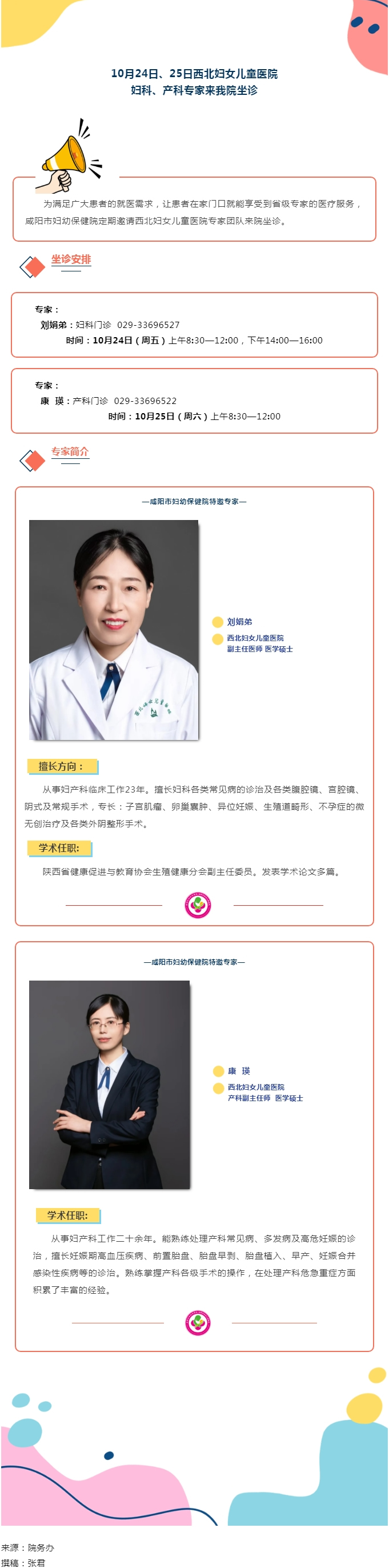 10月24日、25日西北妇女儿童医院妇科、产科专家来我院坐诊