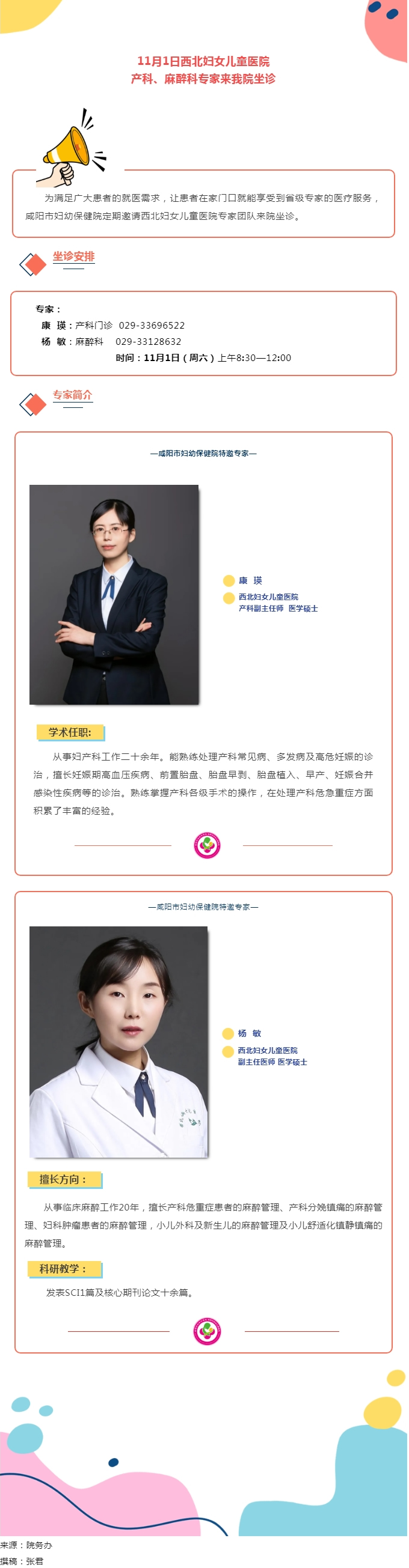 11月1日西北妇女儿童医院产科、麻醉科专家来我院坐诊