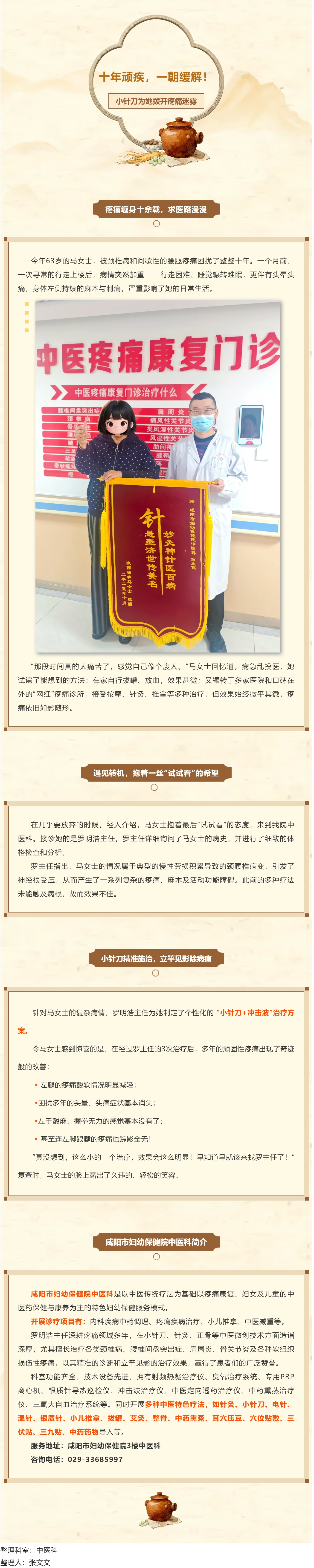 十年顽疾,一朝缓解!小针刀为她拨开疼痛迷雾