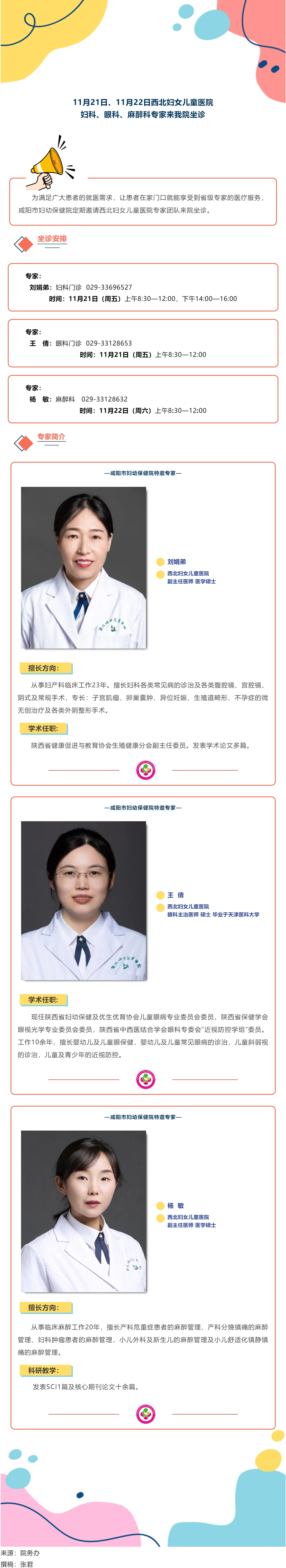 11月21日、11月22日西北妇女儿童医院妇科、眼科、麻醉科专家来我院坐诊