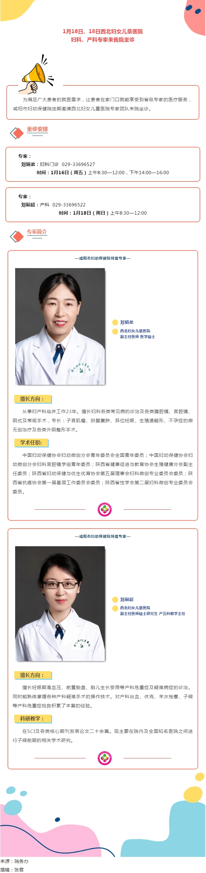 1月16日、18日西北妇女儿童医院妇科、产科专家来我院坐诊