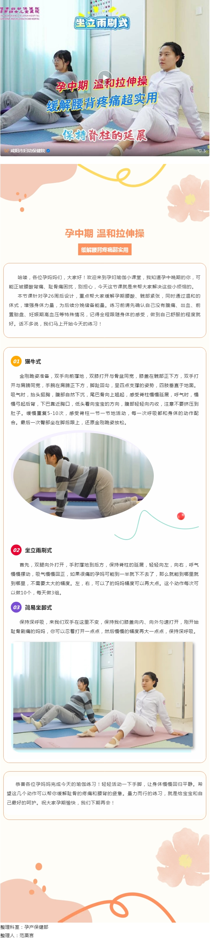 孕中期 温和拉伸操——缓解腰背疼痛超实用