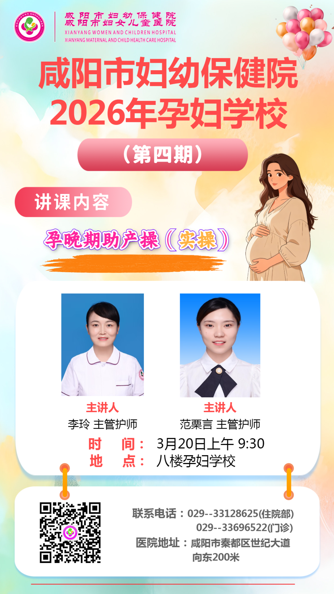 咸阳市妇幼保健院2026年(第四期)孕妇学校即将开讲!