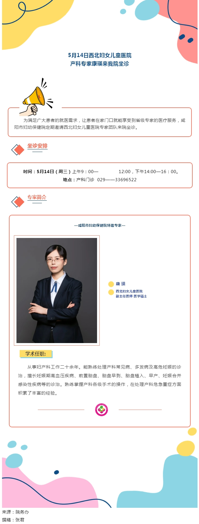 5月14日西北妇女儿童医院产科专家康瑛来我院坐诊