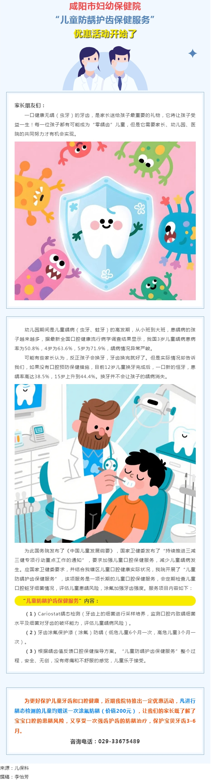 咸阳市妇幼保健院“儿童防龋护齿保健服务”优惠活动开始了