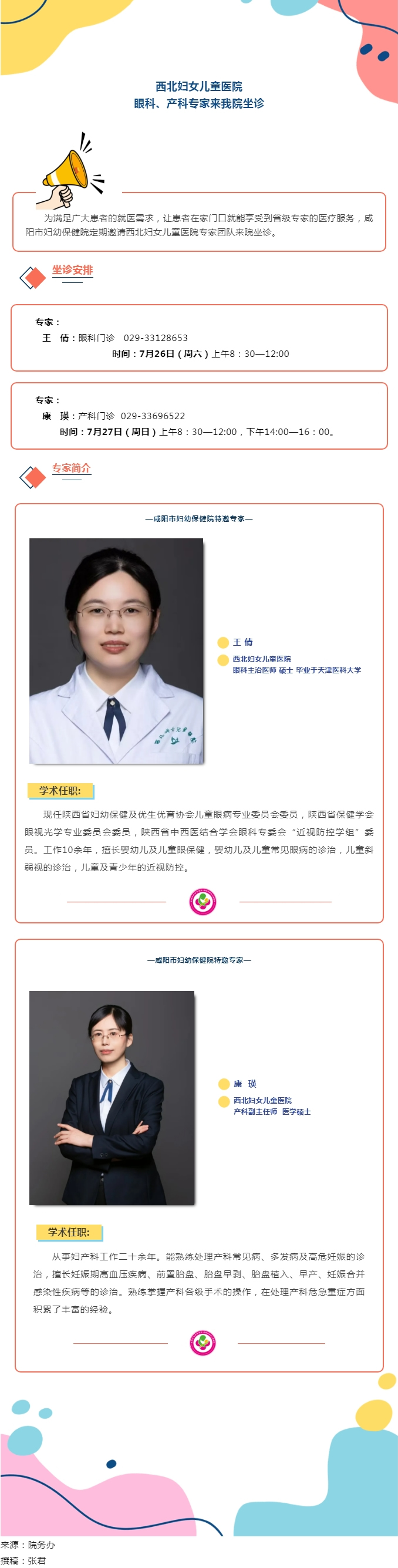 7月26日、27日西北妇女儿童医院眼科、产科专家来我院坐诊
