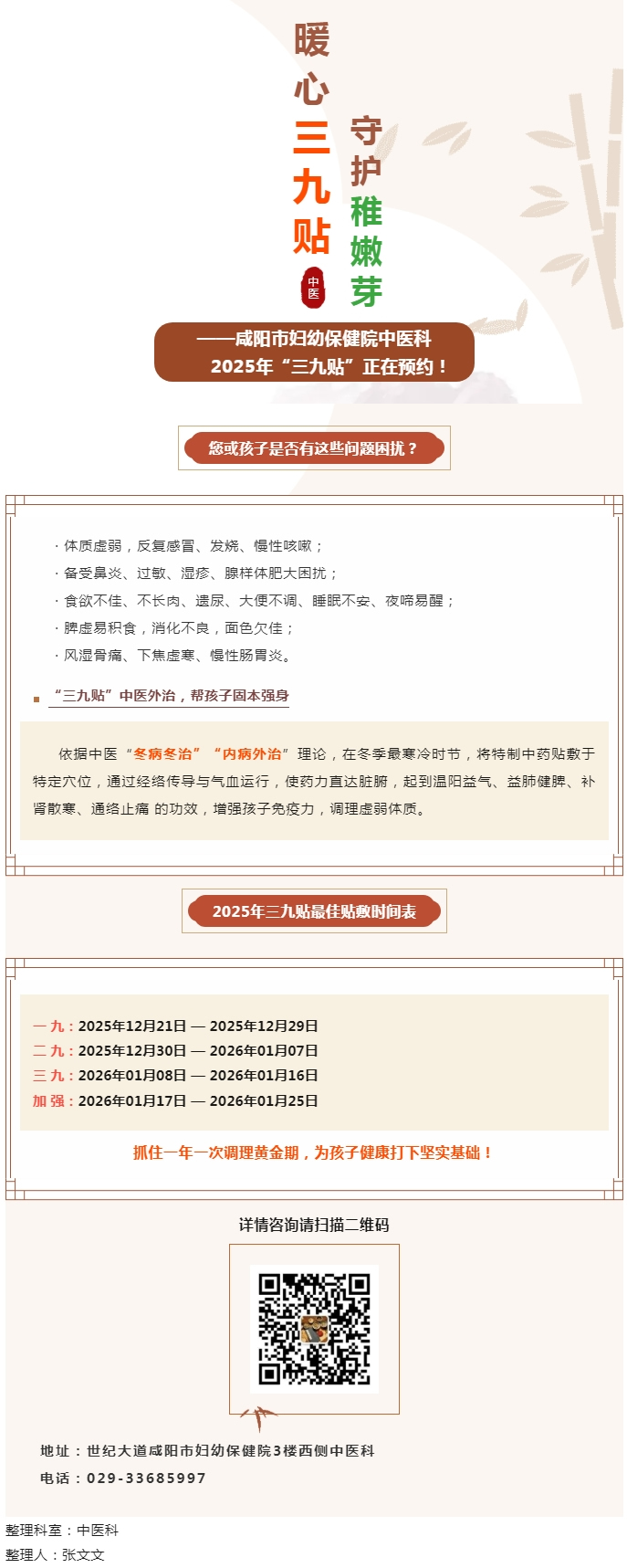 【暖心三九贴 守护稚嫩芽】——咸阳市妇幼保健院中医科2025年“三九贴”正在预约!