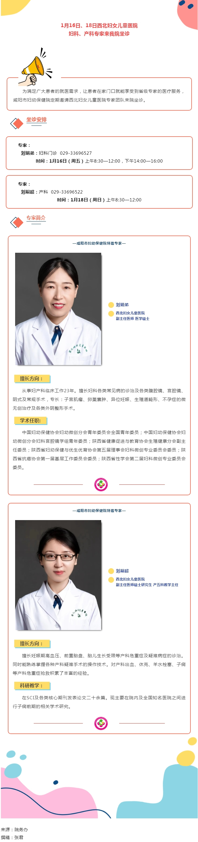 1月16日、18日西北妇女儿童医院妇科、产科专家来我院坐诊