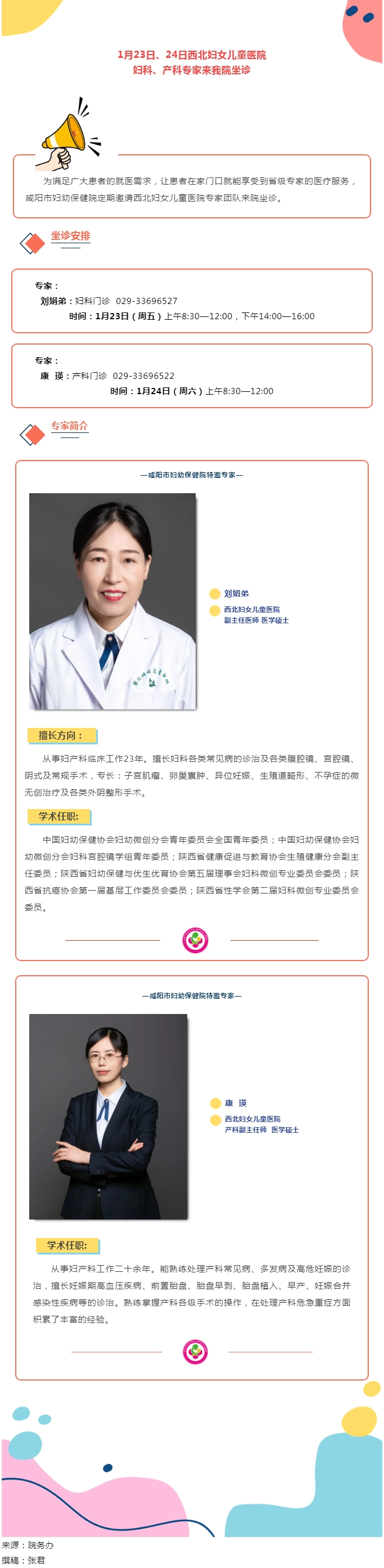 1月23日、24日西北妇女儿童医院妇科、产科专家来我院坐诊