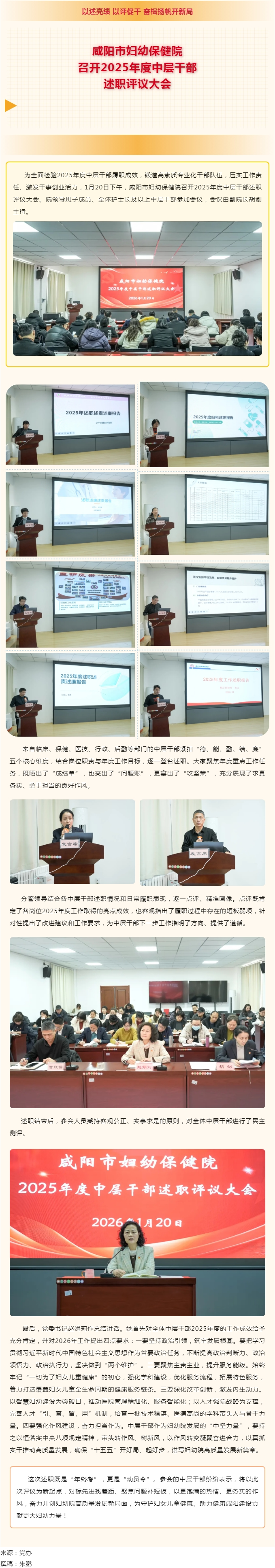 以述亮绩 以评促干 奋楫扬帆开新局——咸阳市妇幼保健院召开2025年度中层干部述职评议大会