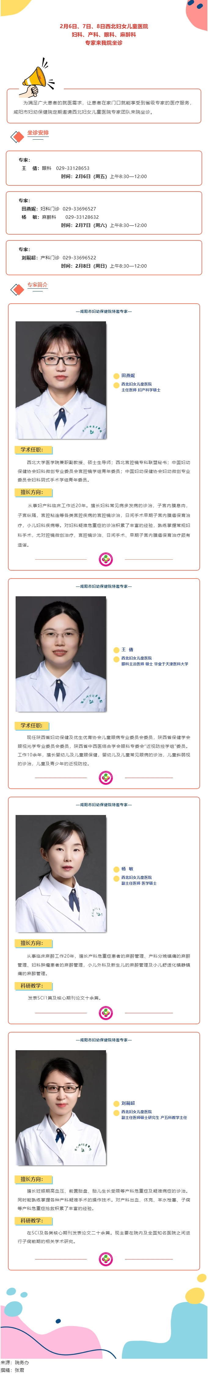 2月6日、7日、8日西北妇女儿童医院妇科、产科、眼科、麻醉科专家来我院坐诊