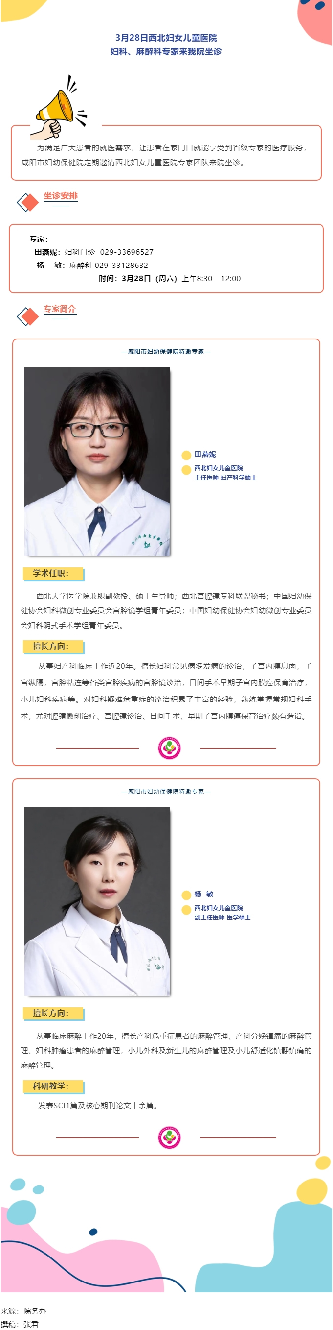 3月28日西北妇女儿童医院妇科、麻醉科专家来我院坐诊