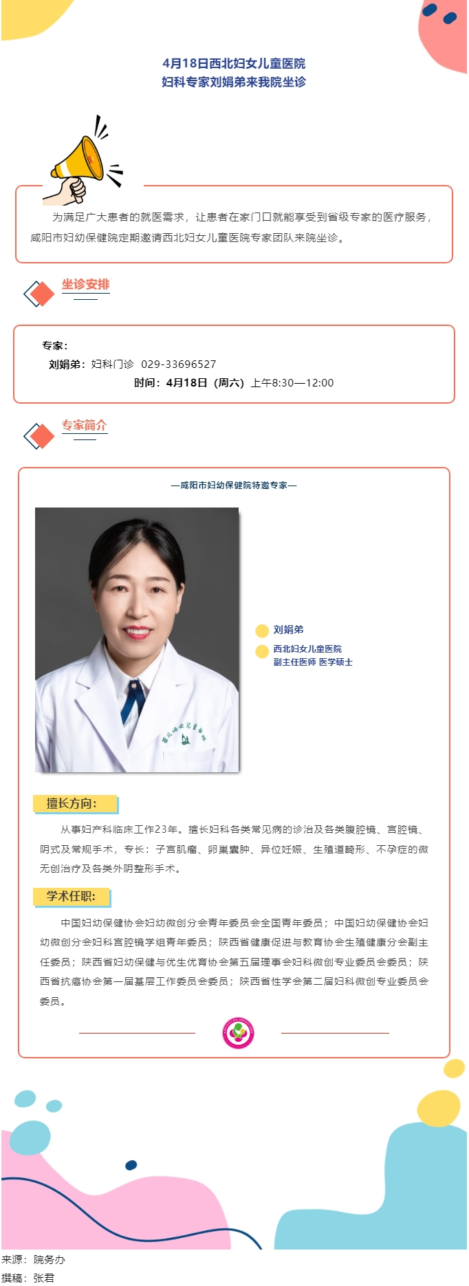 4月18日西北妇女儿童医院妇科专家刘娟弟来我院坐诊