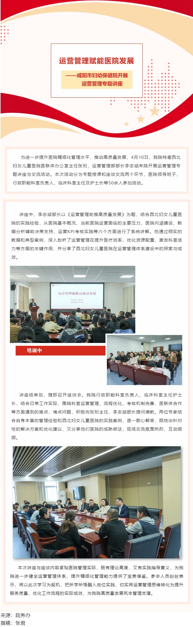 运营管理赋能医院发展——咸阳市妇幼保健院开展运营管理专题讲座