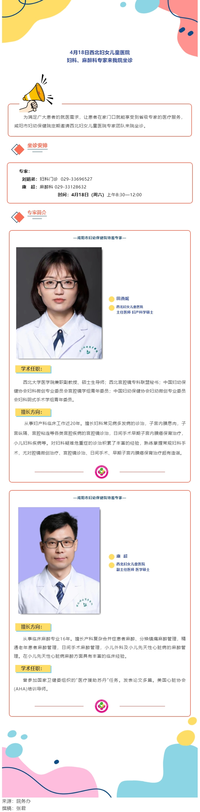 4月18日西北妇女儿童医院妇科、麻醉科专家来我院坐诊